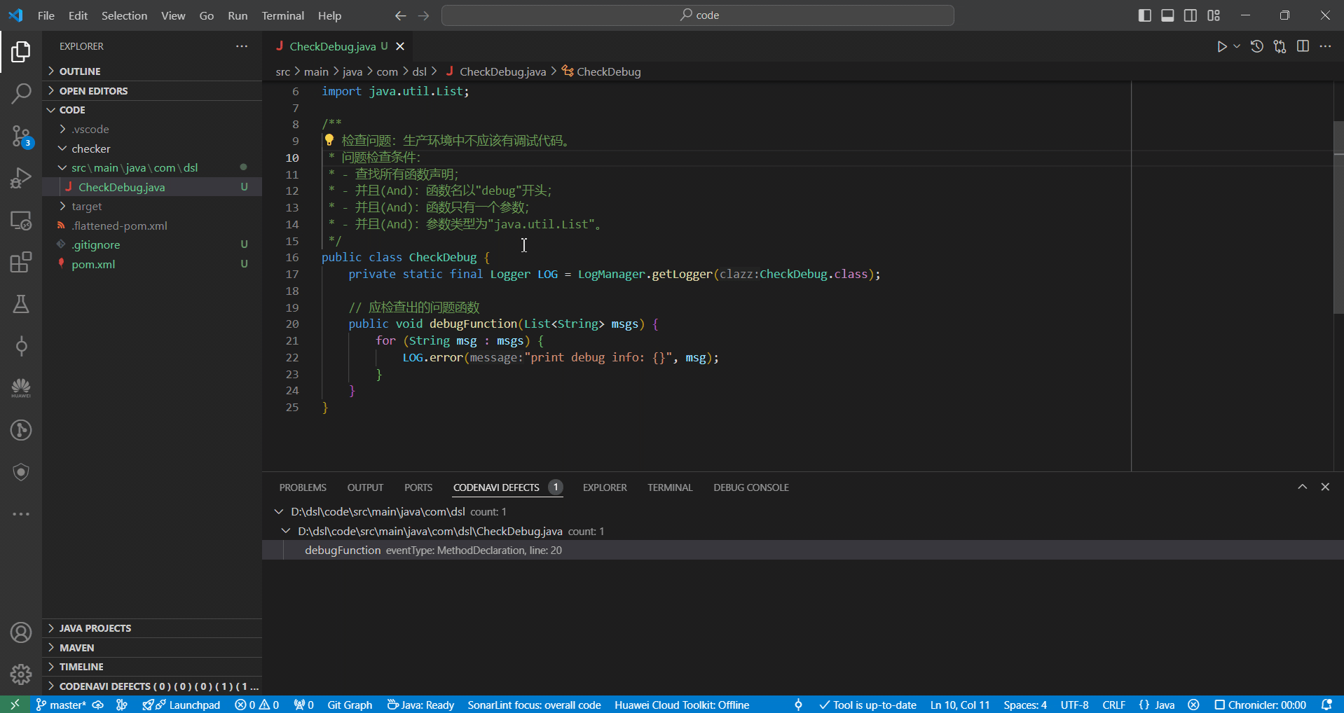 - 用户可以通过 DSL 语言快速开发满足需要检查的问题;