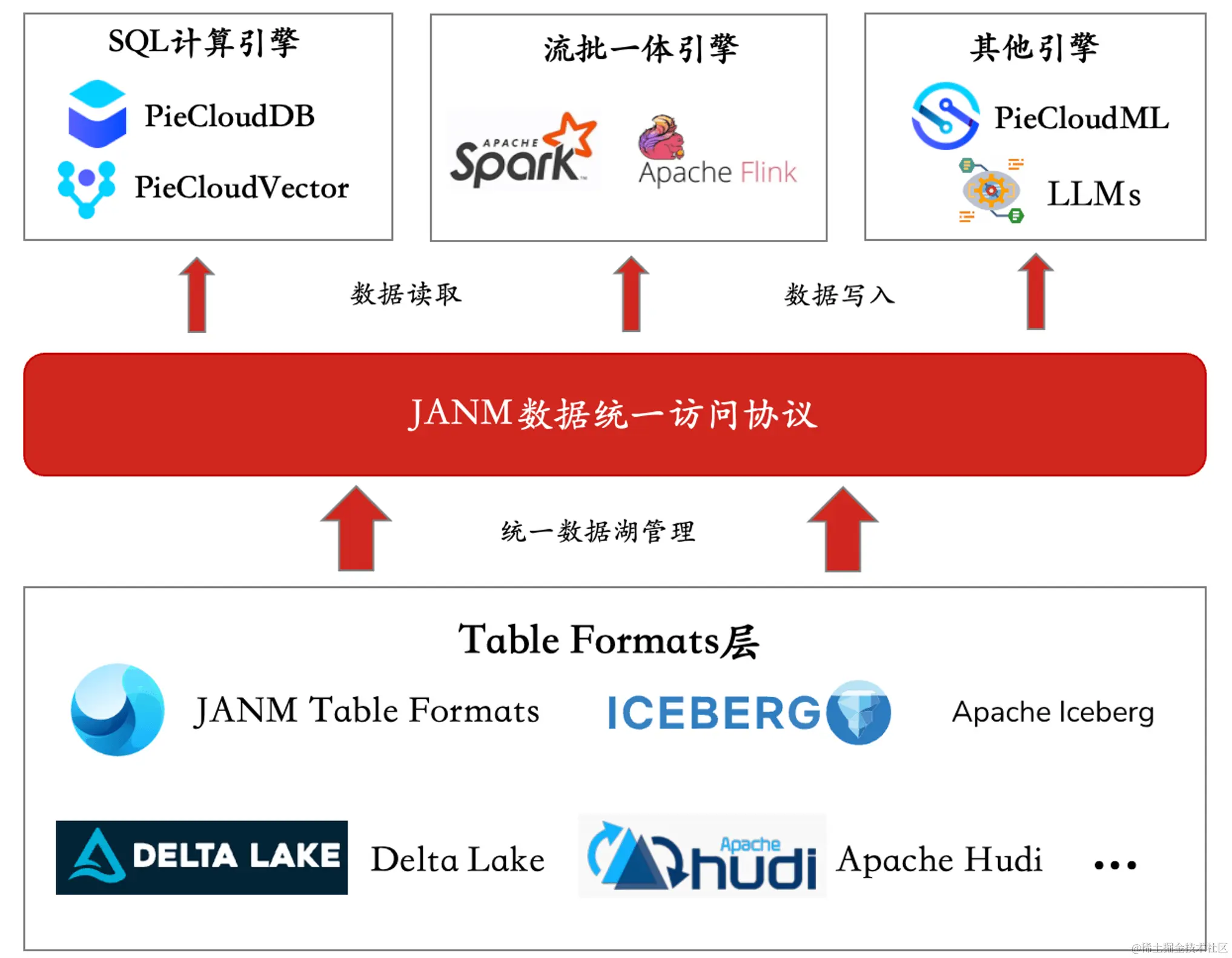 简墨支持多模态数据共享,可打通企业内部各个地方的数据,将结构化数据、半结构化数据以及非结构化数据统一的进行管理,具备高度抽象的数据访问协议,采用全自研的 Table Format 技术,可无缝对接 Apache Iceberg、Apache Hudi、Delta Lake 等多种存储,构建统一数据湖管理,并可通过统一的接口将数据共享给 SQL、流批一体、大模型等多种数据计算引擎,一份数据,多引擎计算,实现数据在不同服务之间的真正互通。
