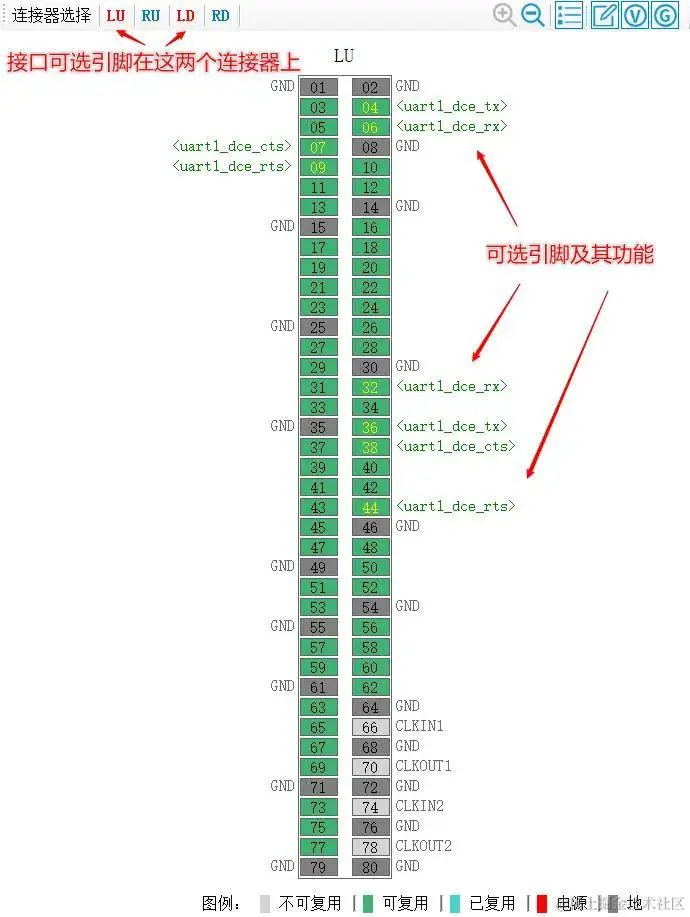 工程师可以参考可选引脚的分布情况进行设计,并确定需要选择的引脚。