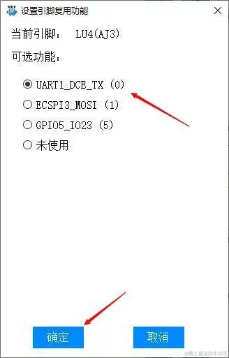 在弹出的“设置引脚复用功能”窗口选择相应的功能。