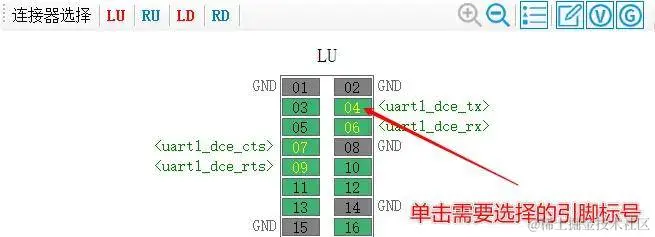 重复上述操作完成所有引脚的选择,选择结果同样会同步显示到引脚图和设备树语句窗口。
