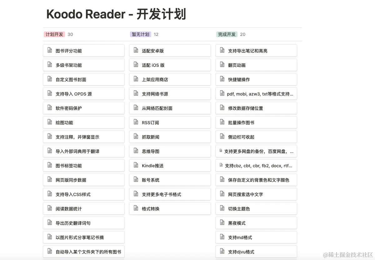 KoodoReader是一个非常不错的阅读器,它提供了优秀的阅读体验并具备跨平台和开源的特性。同时目前项目依然保持着一个不错的开发进度,而且对于未来也有很多规划,可以看到roadmap里规划了很多内容。