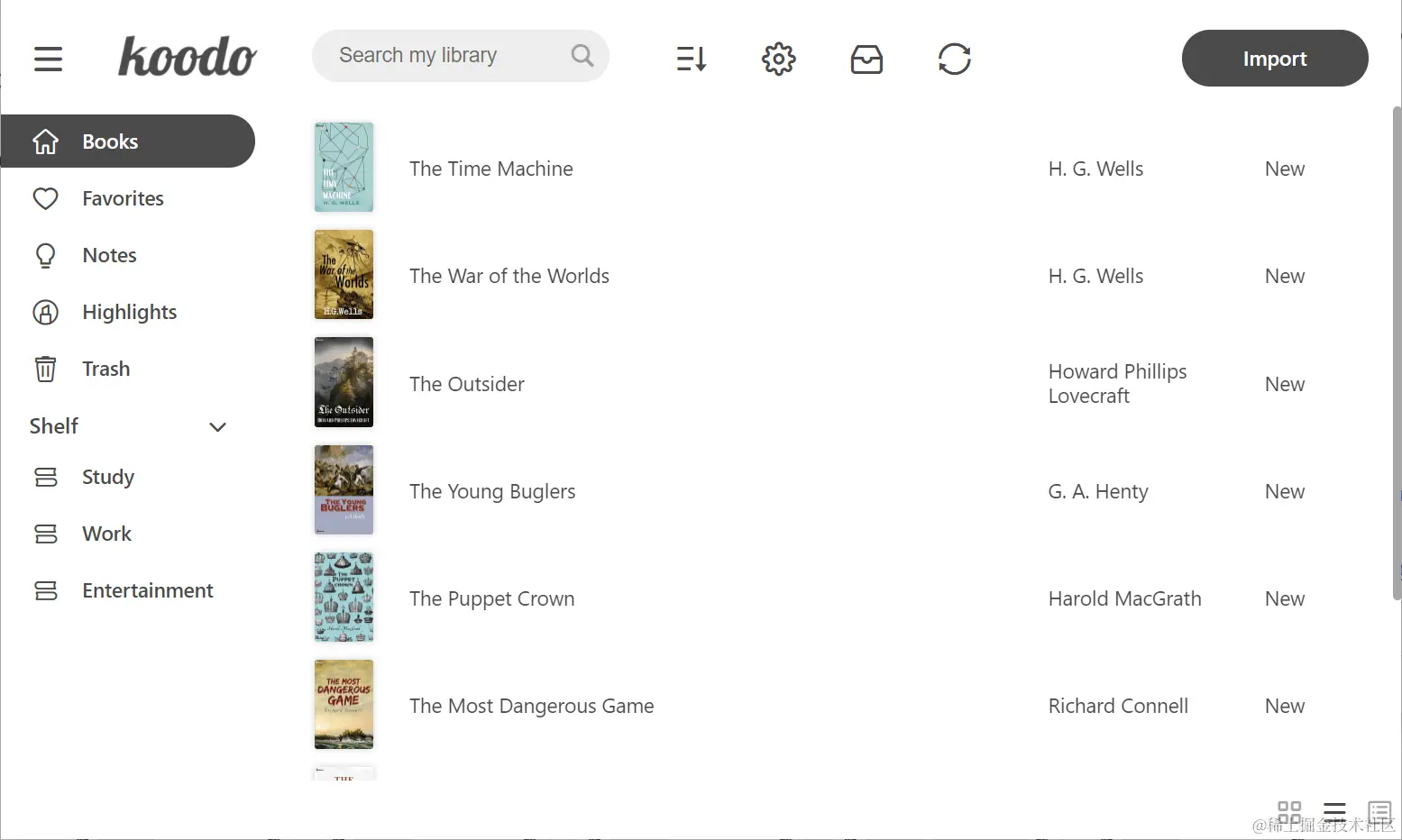 Koodo Reader 是一个开源免费的电子书阅读器,支持多达15种主流电子书格式,包括 EPUB、PDF、MOBI、AZW3 、txt、fb2、cbr、cbz、cbt、md、docx、rtf、html、xml等,满足不同用户的需求。
