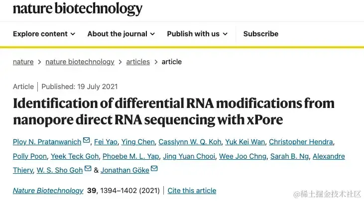 无独有偶,「Nature Biotechnology」于 2021 年收录的一篇名为「Identification of differential RNA modifications from nanopore direct RNA sequencing with xPore」的论文中,研究团队利用 xPore 从 Direct RNA-seq 数据中高精度鉴定 RNA 修饰,并从单次高通量实验中分析差异修饰和表达。