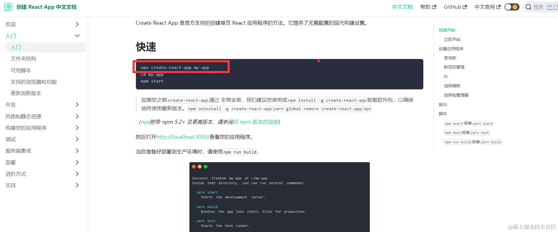 我们可以直接执行npx create-react-app my-app