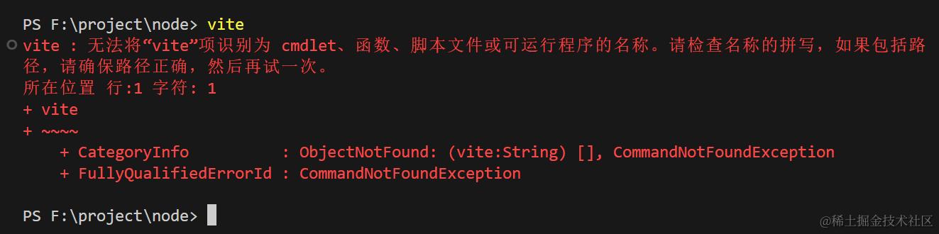 安装完成之后发现无法执行运行vite命令
