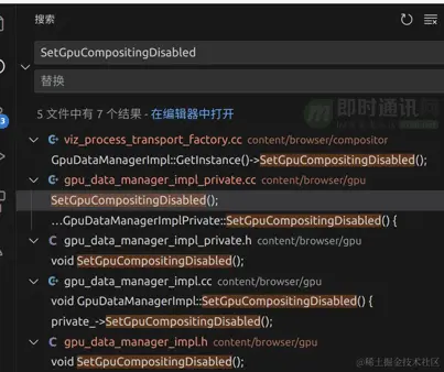 它调用了 IsGpuCompositingDisabled 逻辑,判断已经开启 gpu 加速的情况下,再去设置这个变量为 true,关闭 gpu 加速。