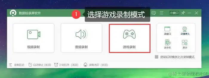 游戏录屏方法一:数据蛙录屏软件