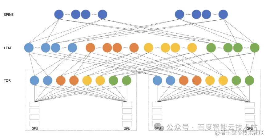 值得一提的是,在大模型训练场景下,考虑到不同的并行策略,我们在跨机通信组产生的大多数都是同号卡流量。同号卡通信情况下最佳情况可以只经过一跳 TOR,最差情况只经过 LEAF。只有异号卡流量才可能经过 SPINE 中转。