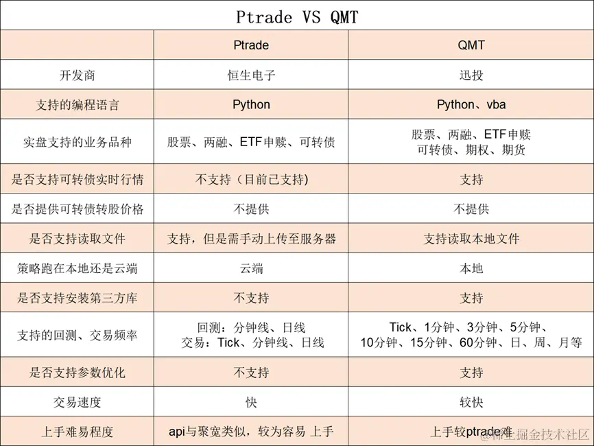 QMT和PTrade是国内两款常见的量化交易软件,各有其独特的特点和优势。以下是详细的比较: 总结