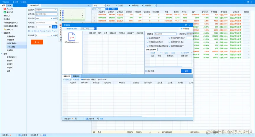 支持内置标准算法交易、随机量交易,有效承接大额交易,隐藏交易行为,满足投资者的个性化交易需求。 4.量化策略交易与编写