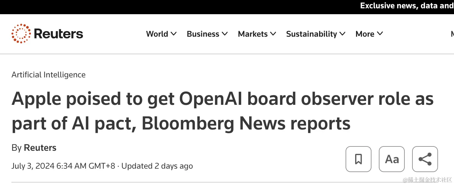 ◇ 苹果加入 OpenAI 董事会,与微软同等地位 🔗 News