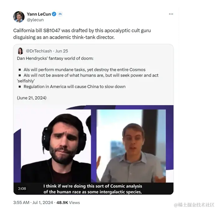 ◇ 杨立昆:加州SB1047法案起草者,是末日邪教大师 🔗 News