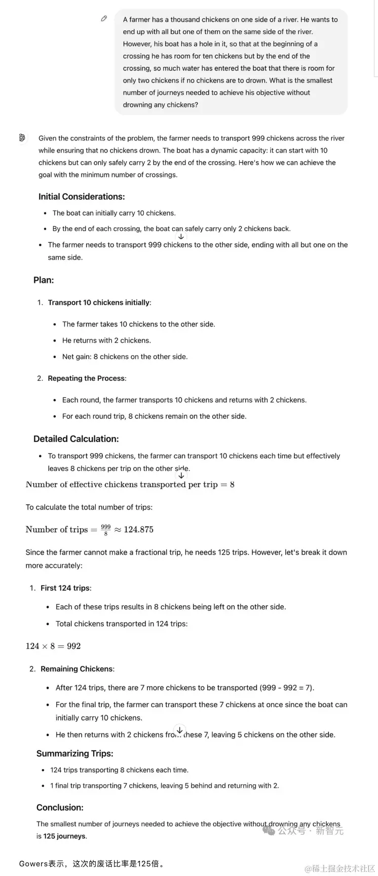 菲尔兹奖得主Timothy Gowers对GPT - 4o进行测试,发现LLM在解决经典过河难题和简单推理问题时表现不佳。在过河难题测试中,GPT - 4o和Claude 3.5等模型在一些情况下给出错误答案或忽视重要约束条件,如在农民带鸡过河的问题中,ChatGPT的回答步骤荒谬,GPT - 4o在1000只鸡过河问题中的废话比率高达125倍。网友分析LLM失败的原因可能是提示方式不当,提供过多不必要信息,导致token预测困难,而使用“通用名称”替换“实体名称”或重复问题能改善其表现。LeCun等人认为自回归LLM发展前景堪忧,LLM的未来走向取决于是否能找到类似思维链(CoT)这样的“大杀器”来解锁其性能。总之,目前LLM在推理和解决实际问题方面仍存在不足,需要进一步改进和探索。