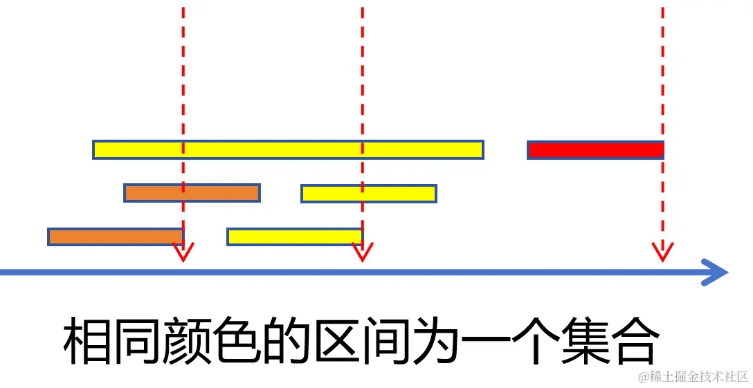 也就是,我们只需判断当前区间的左端点 是否和 右侧端点最小的那个集合是否相交即可。