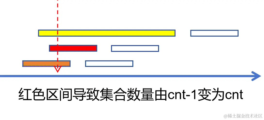 cnt - 1变为cnt。也就是当前区间一定各个集合的最后一个区间有重叠部分。 -