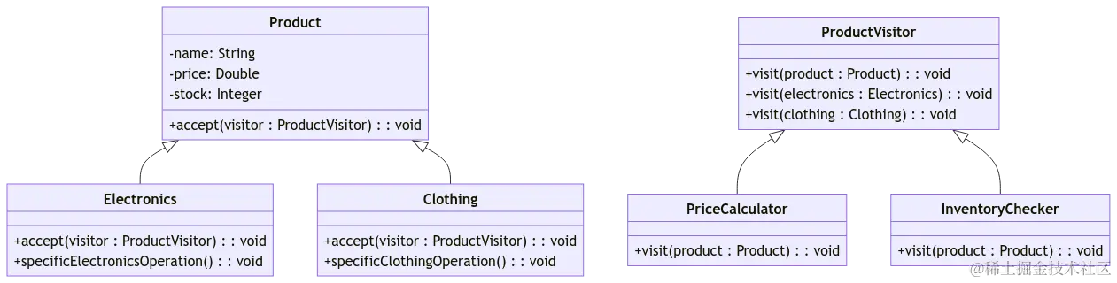 - 扩展性:新增操作时,只需新增访问者类,不需要修改商品类。