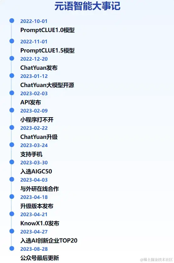 联网检索,元语智能chatYuan这个公司的大事记