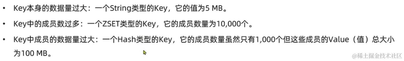 - 内存空间不平衡:比如redis分片集群情况下,有大key的redis节点占用内存会多。