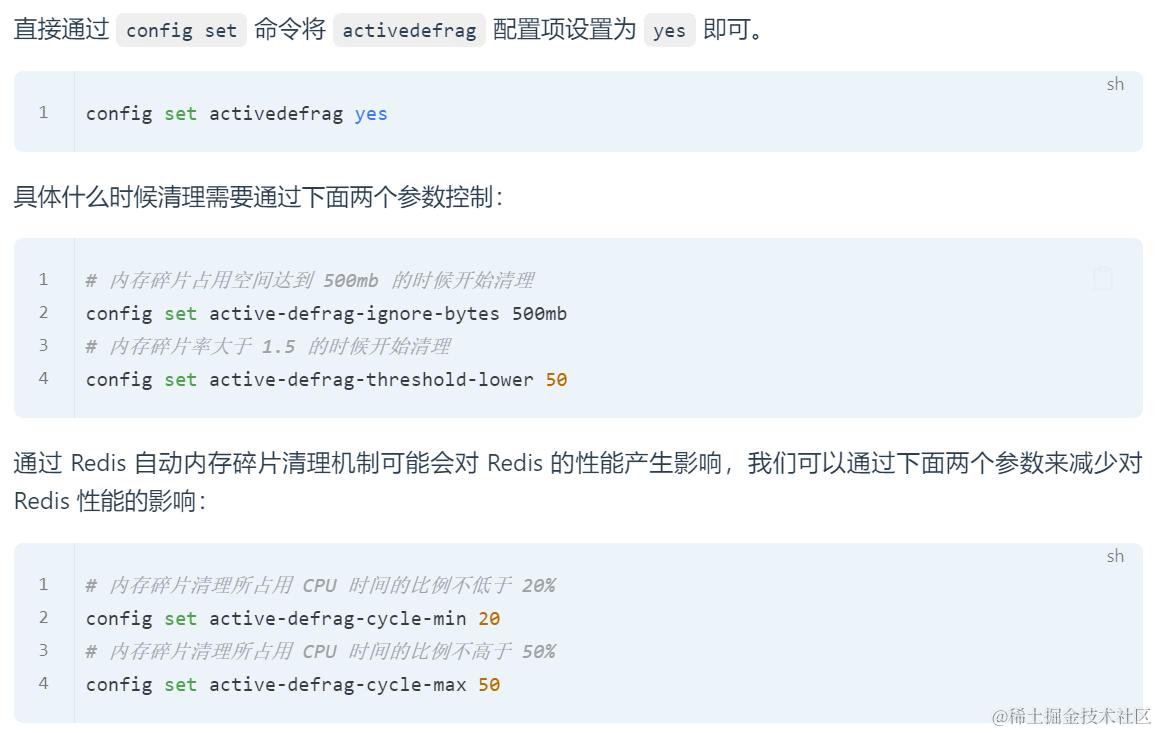 - Redis4.0-RC3 版本以后自带了内存整理。