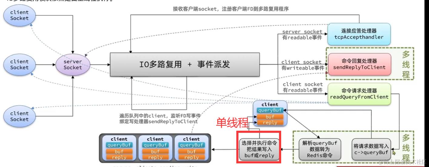 - io读取网络请求并将请求解析成操作是多线程,将执行结果IO写回网络也是多线程。但具体执行命令操作仍然是单线程 串行执行的,所以不用担心线程安全问题。