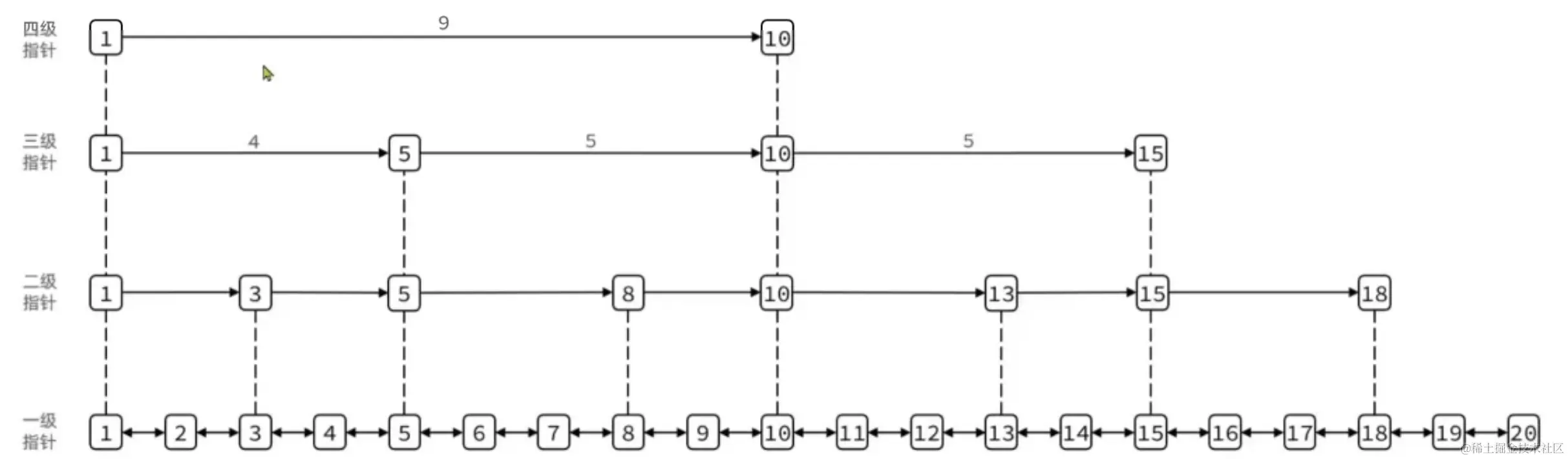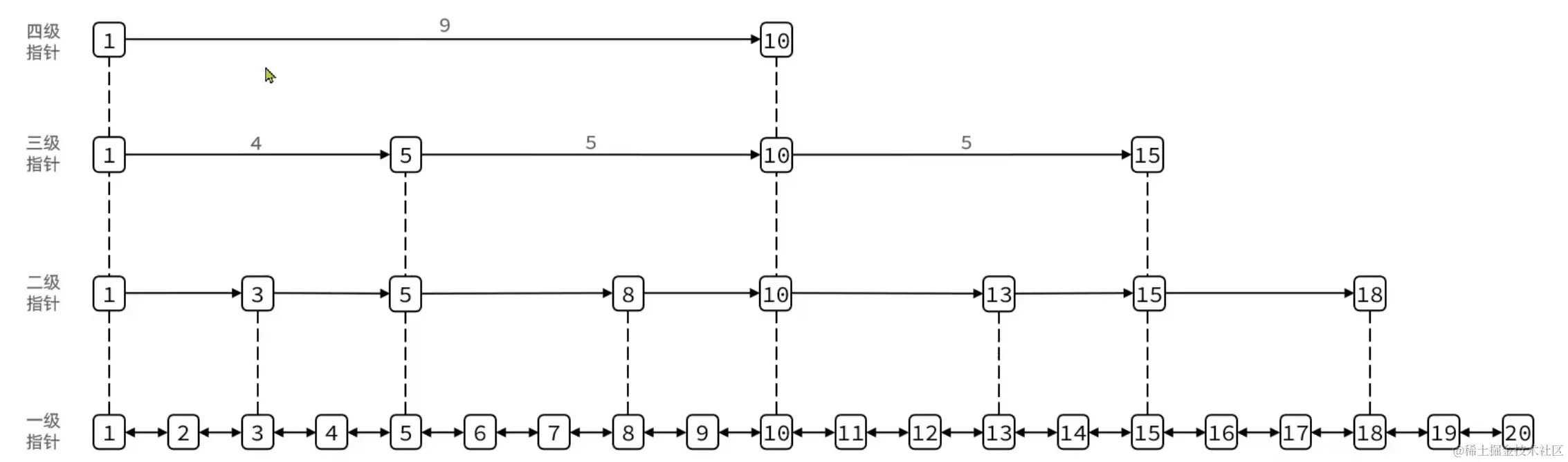 - 而且 跳表的 实现和维护也比B+树 简单,不需要像B+树那样维护的时候有分裂合并的操作。
