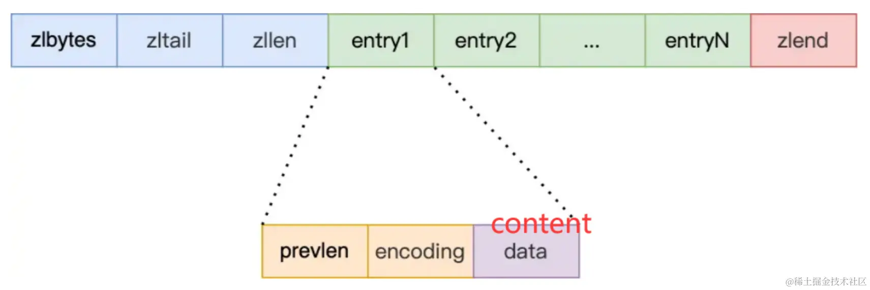 - zltail,记录压缩列表「尾部」节点距离起始地址由多少字节,也就是列表尾的偏移量;
