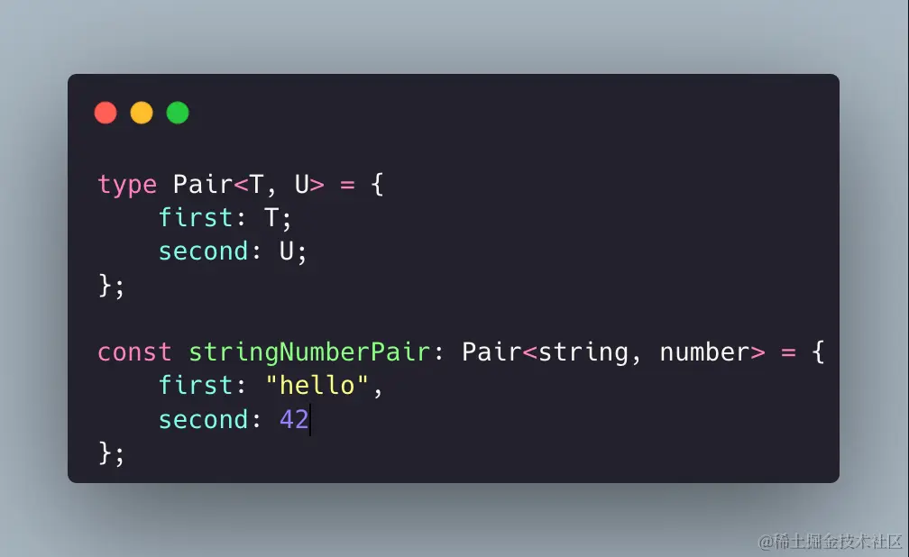 同样的类型别名也可以通过定义泛型来扩大自己的类型声明范围。类型别名定义泛型的位置和接口 Interface 定义的方式是一致的