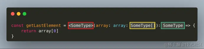 SomeType来约束函数的参数是SomeType类型数组绿色的方框:约束函数的返回值为 泛型