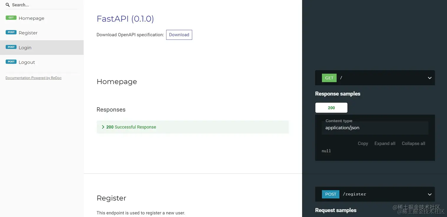 默认情况下,FastAPI 支持 OpenAPI 以及 Swagger UI 和 ReDoc。这意味着每个端点都自动从与端点关联的元数据中记录下来。