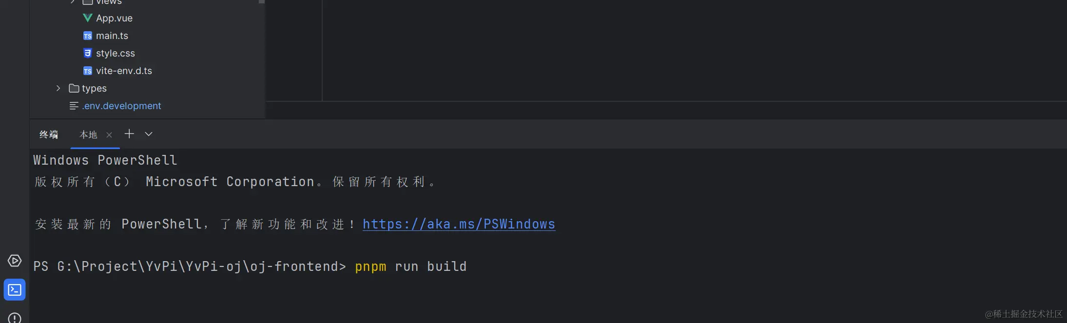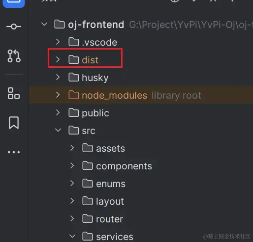 在项目根目录打开命令行,执行命令npm run build构建项目,构建完成后会生成dist目录
