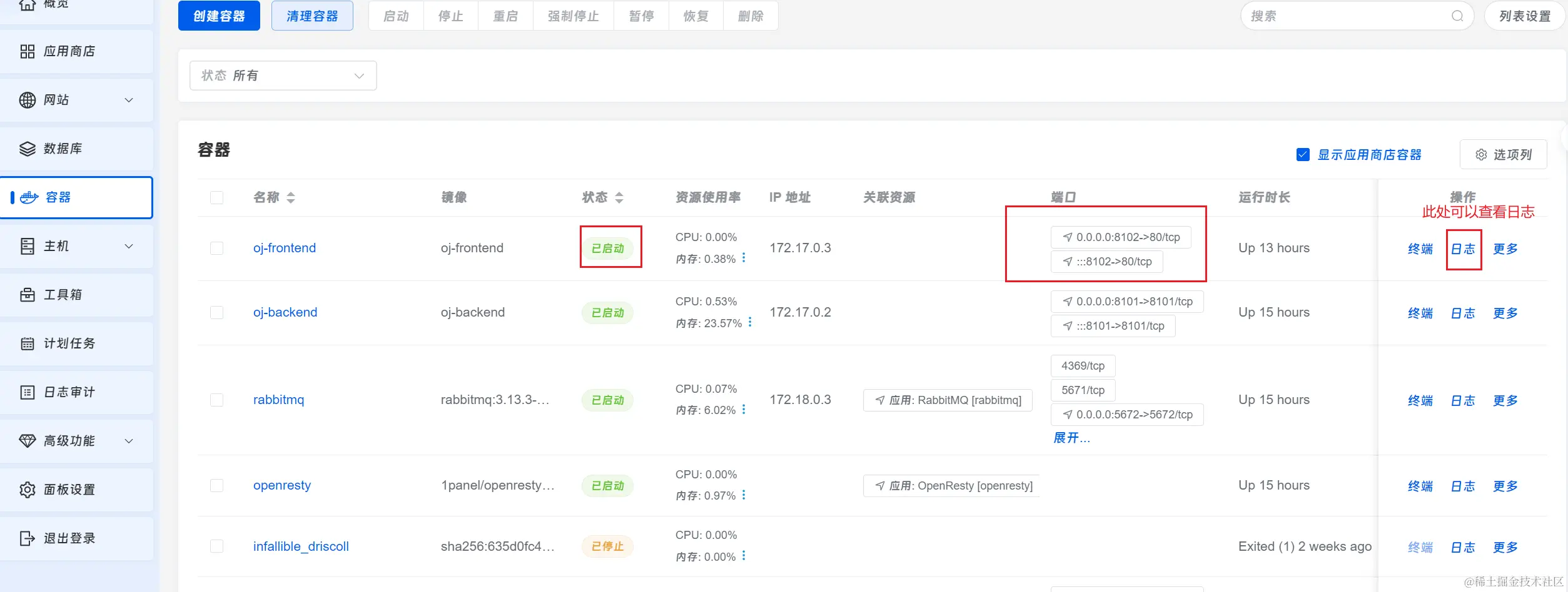 # -d 表示容器在后台运行,不会阻塞当前终端 --name 为容器指定一个名称 -p 8102:80 表示将宿主机的8102端口映射到容器的80端口 oj-frontend 表示用来创建容器的镜像名