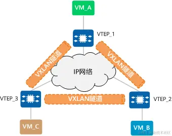 VXLAN隧道由一对VTEP IP地址确定,创建VXLAN隧道实际上是两端VTEP获取对端VTEP IP地址的过程,只要对端VTEP IP地址是三层路由可达的,VXLAN隧道就可以建立成功。