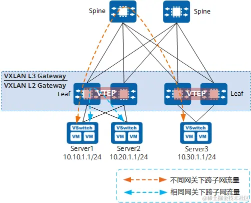 - 同一个Leaf节点既可以做VXLAN二层网关,也可以做VXLAN三层网关,部署灵活。