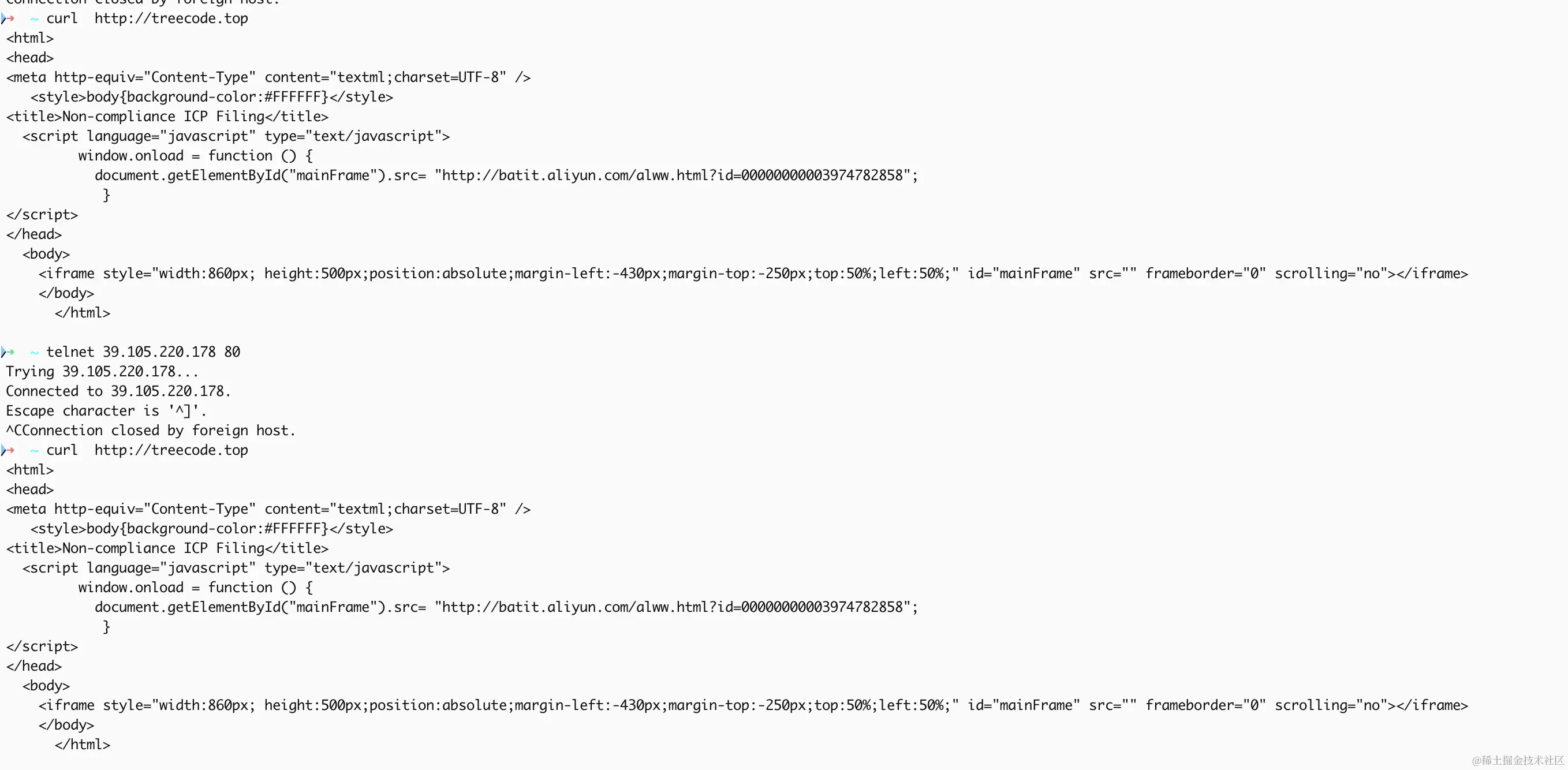配置完成后可以在本地使用curl命令或者访问域名检查是否生效: