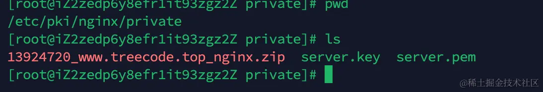 将ssl证书的压缩包解压到/etc/pki/nginx/private/路径下,可自定义路径,自定义路径在nginx.conf配置中ssl_certificate、ssl_certificate_key填写自定义路径即可。