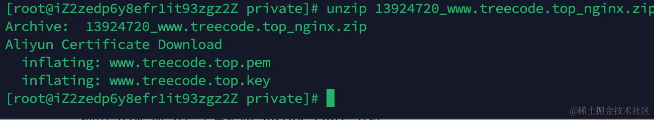 在配置前需要安装unzip工具以解压上文保存在本地的ssl证书。