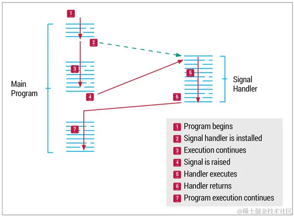 正如硬件子系统可以中断处理器一样,信号也可以中断进程的执行。因此,它们被视为软件中断。中断处理程序处理硬件中断,信号处理程序处理信号。