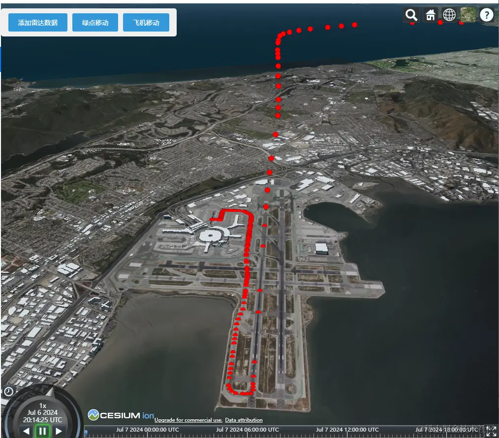 到目前为止,我们已经可视化了各个雷达样本。CesiumJS内置支持在一段时间内收集的样本之间进行插值,这样我们就可以看到飞机在任何给定时刻的位置。