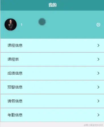 我的,教师在我的页面可以查看用户信息、课程信息、课程表、成绩信息、预警信息、请假信息、考勤信息等信息进行查看,如图5-4所示。