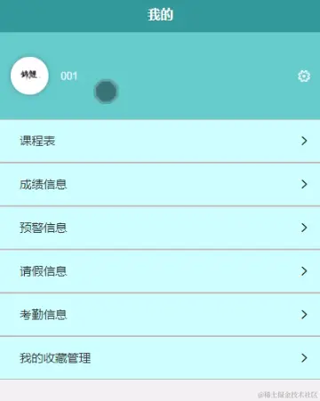 我的,学生在我的页面可以查看课程表、成绩信息、预警信息、请假信息、考勤信息、我的收藏管理等信息,如图5-10所示。