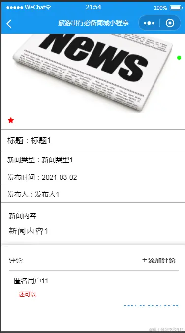 用户进入指定功能操作区之后可以查看新闻资讯。其页面见下图。用户在页面内可以收藏新闻,也能在页面底端提交评论,查看评论信息。
