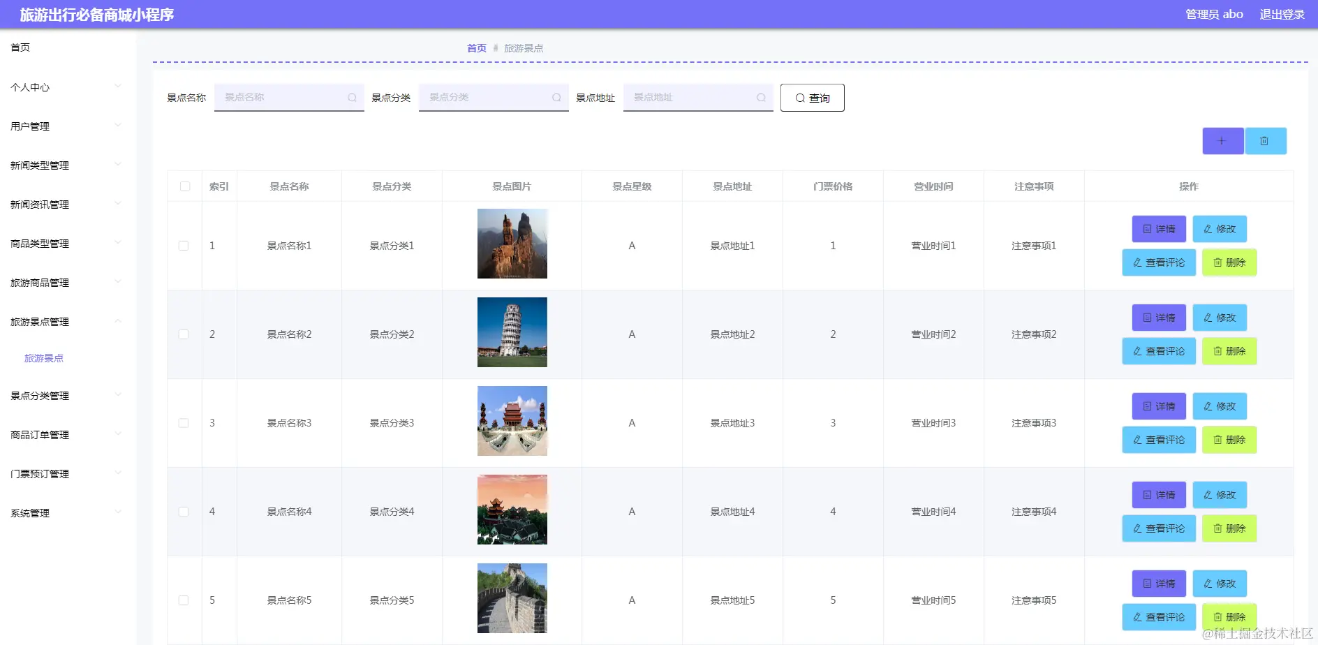 图5.2 旅游景点管理页面