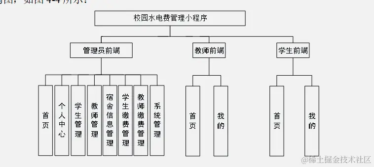 教师登录到校园水电费管理小程序可以查看首页、我的等内容,如图5-9所示。