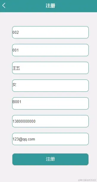 学生注册,在学生注册页面可以填写学号、密码、姓名、性别、寝室、电话、邮箱、照片等信息,进行注册如图5-1所示。