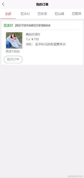 用户进入我的订单页面可以填写商品名称、价格、地址等信息,进行提交操作,如图5-7-所示。