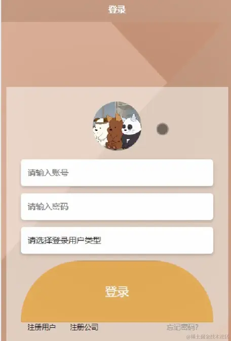 登录,用户和公司通过输入账号和密码,选择用户类型并点击登录进行系统登录操作,如图5-1所示。