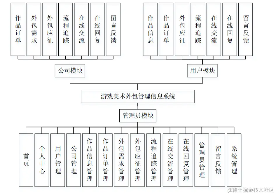 任何系统都要遵循系统设计的基本流程,本系统也不例外,同样需要经过市场调研,需求分析,概要设计,详细设计,编码,测试这些步骤;以java语言设计为基础,实现了游戏美术外包管理信息系统。该系统基于B/S即所谓浏览器/服务器模式,应用java技术,选择MySQL作为后台数据库。系统主要包括系统首页,个人中心,用户管理,公司管理,作品信息管理,作品订单管理,外包需求管理,外包应征管理,流程追踪管理,在线交流管理,在线回复管理,管理员管理,留言反馈,系统管理等功能模块。