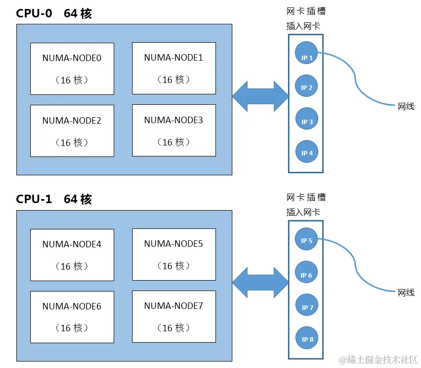 因为海光、鲲鹏CPU带有网卡插槽,为了避免网络数据包过多时造成CPU0的中断频繁、sys高以及跨CPU调度,多实例下的网络配置建议如下: