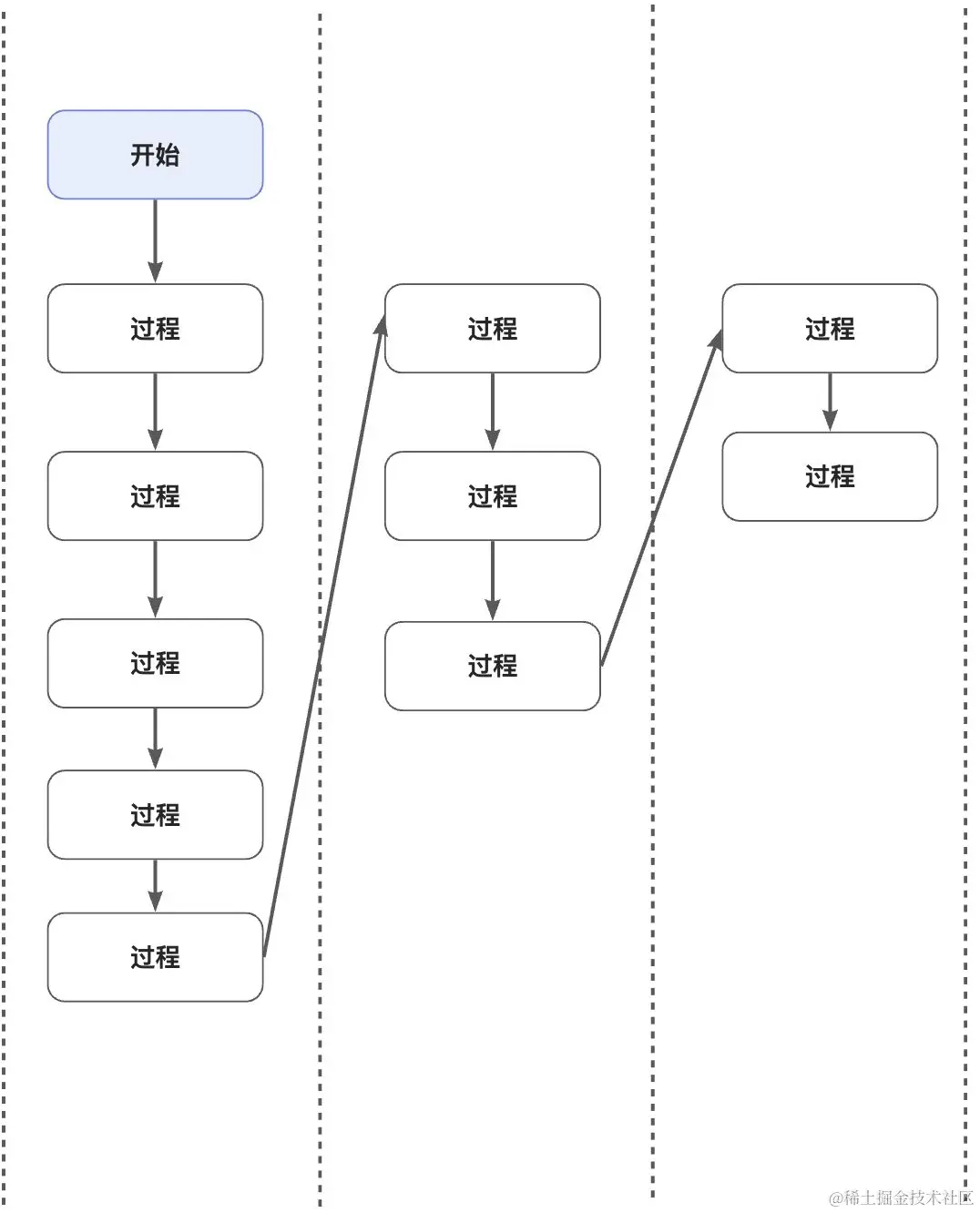 如下表示交易发生的流程,不同列表示不同层级。